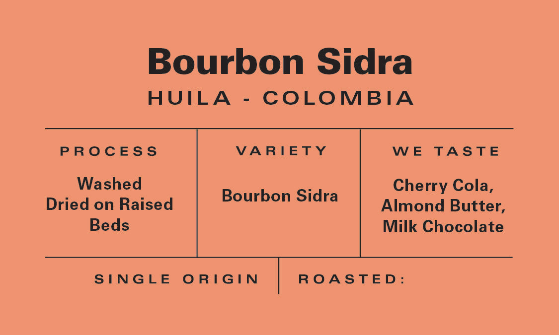 This lot of washed bourbon sidra is a unique blend from over 10 farms spanning different microclimates and regions in Huila, showcasing exceptional quality. Known simply as “sidra,” this cultivar is a dream for growers: productive, resistant to Roya, and deliciously fruity. Its origins remain unclear, but it's widely believed to have been developed by Nestlé in Ecuador by crossing red bourbon and typica varieties. The resulting seedlings were reportedly shared with local farmers for feedback, leading to sidra becoming a signature plant in northern Ecuador. In Colombia, however, it's still rare, available primarily from a few dedicated farmers who have sourced it directly from Ecuador.