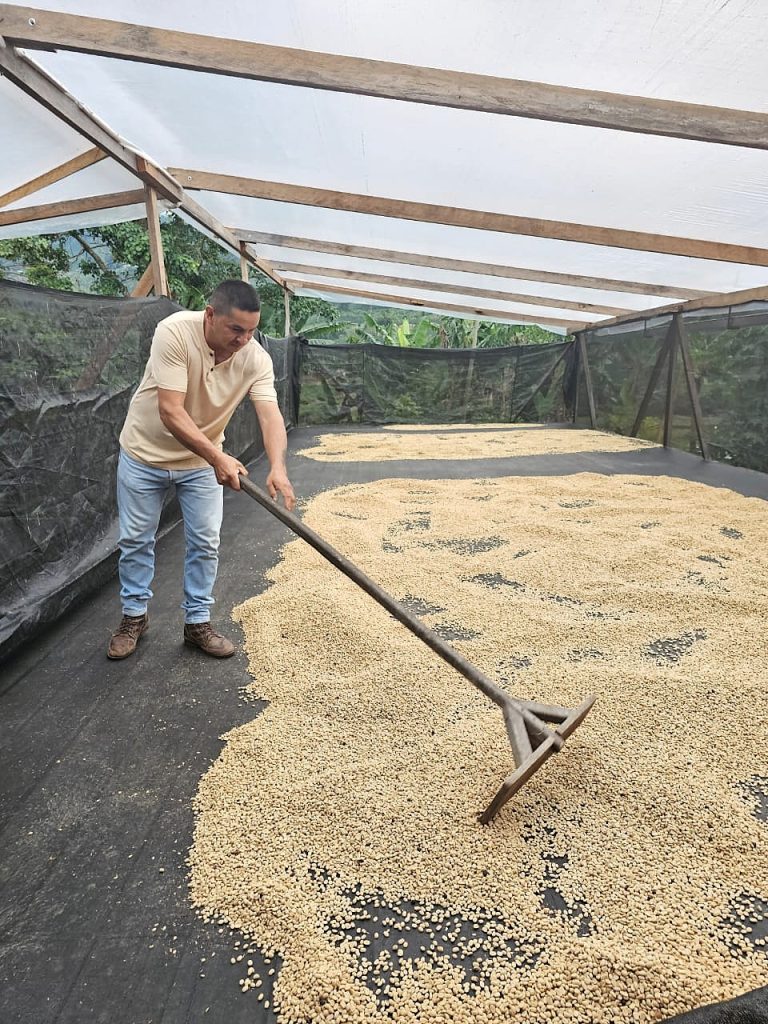 Terra Coffee SAS, founded in 2016 by Wbeimar and Juliana at Finca La Terraza, focuses on developing high-quality coffees in Huila and Nariño. They manage two producer associations: "Terra Verde" in Huila with 120 partners and "Ecoterra" in Nariño with 140. Their commitment to quality aims to improve the livelihoods of small coffee farming families by raising prices and fostering a sense of pride in their work. We hope you enjoy this lovely coffee!