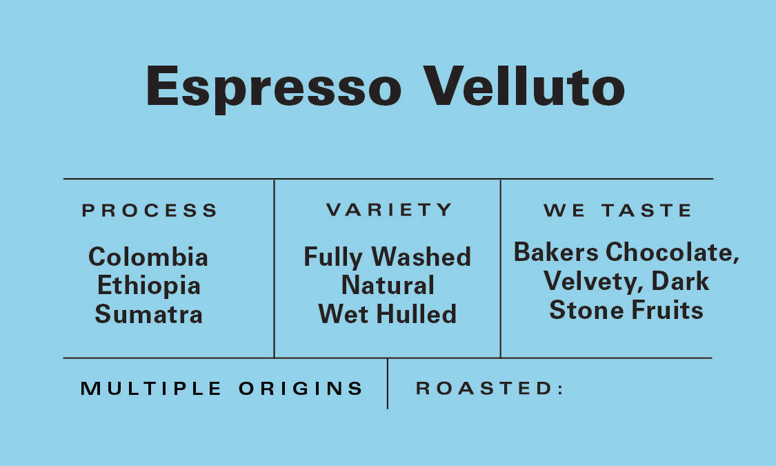 Our Espresso Velluto is a medium roasted classic espresso blend, thoughtfully crafted from Ethiopian, Guatemalan, and Sumatran single-origin coffees. This unique combination of beans is carefully selected to achieve a perfect balance of sweet and earthy notes, creating a blend that's not only delightful as a standalone espresso but also shines when paired with steamed milk in your favorite coffee drinks.